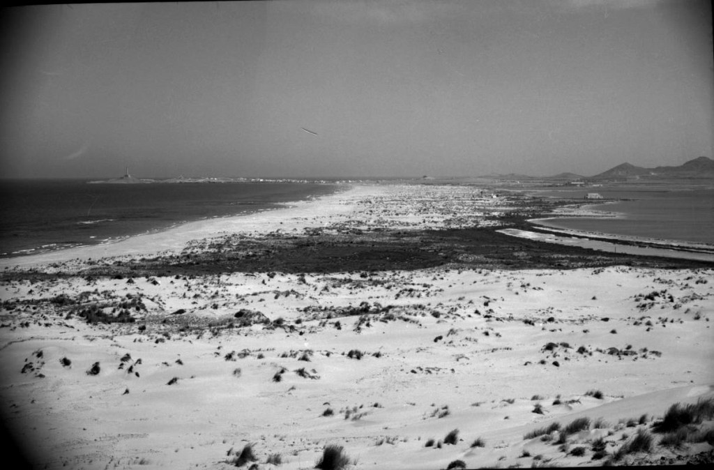 Mientras el tren se pone en marcha, pienso en los veranos de mi infancia. Solía pasar los días allí, en El Carmolí. Recuerdo coger la bicicleta y bajar por la orilla hasta las pasarelas. Desde el mar se veía la nave abandonada —una estructura inmensa, muda, que siempre parecía observarnos desde la distancia—. No sabía entonces que formaba parte de una base aérea, ni que bajo la superficie dormían restos de hormigón y metal, cubiertos por años de polvo y vegetación.