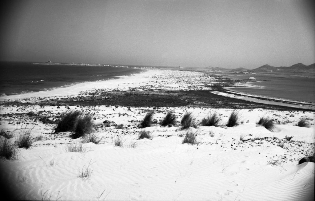 Seguí caminando hacia la pista aérea, visible a unos cincuenta metros. Apenas quedaba nada de ella, más que una línea recta cubierta de hierbas y polvo. Al fondo, el antiguo volcán se alzaba oscuro, inmóvil, con esa forma inconfundible de algo que fue fuego y ahora solo conserva su silueta. Había algo solemne en su quietud, como si vigilara las ruinas y el mar con una paciencia infinita.