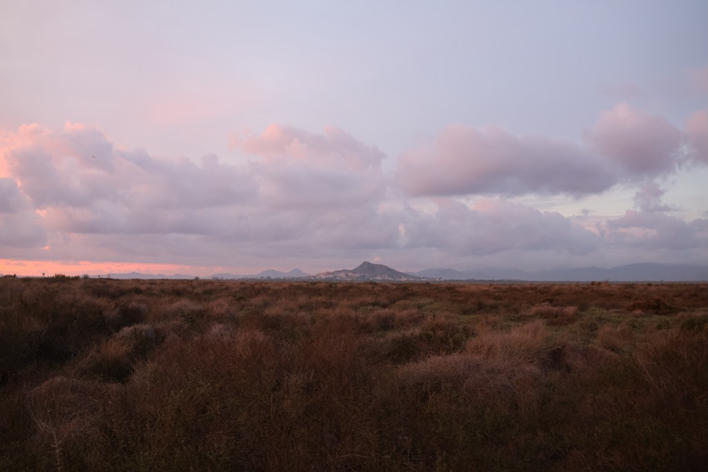 Día dos : A las siete de la mañana llegué al Carmolí. El aire estaba frío, húmedo, y todavía se notaba la calma que dejan las tormentas después de su paso. Hacía apenas unos días que una DANA había recorrido Cartagena con tres jornadas seguidas de lluvia, y todo el paisaje respiraba ese olor espeso a tierra mojada, a hierba recién abatida, a piedra limpia. El suelo aún conservaba el brillo tenue del agua y, a lo lejos, el Mar Menor se extendía como una lámina de plata quieta bajo el amanecer.