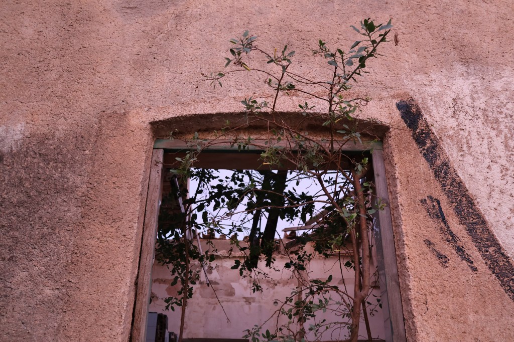 Sigo el trayecto guiado por la pantalla del móvil, una brújula lumínica que late en mi mano. No tengo ruta; solo una dirección intuitiva. Entonces, entre los tonos anaranjados de la tierra, aparece un choque de color: un bloque blanco, sólido, irreal, contrastando con la arcilla rojiza del suelo. Desde lejos, parece un error geométrico dentro del paisaje, un rectángulo que no debería estar allí.